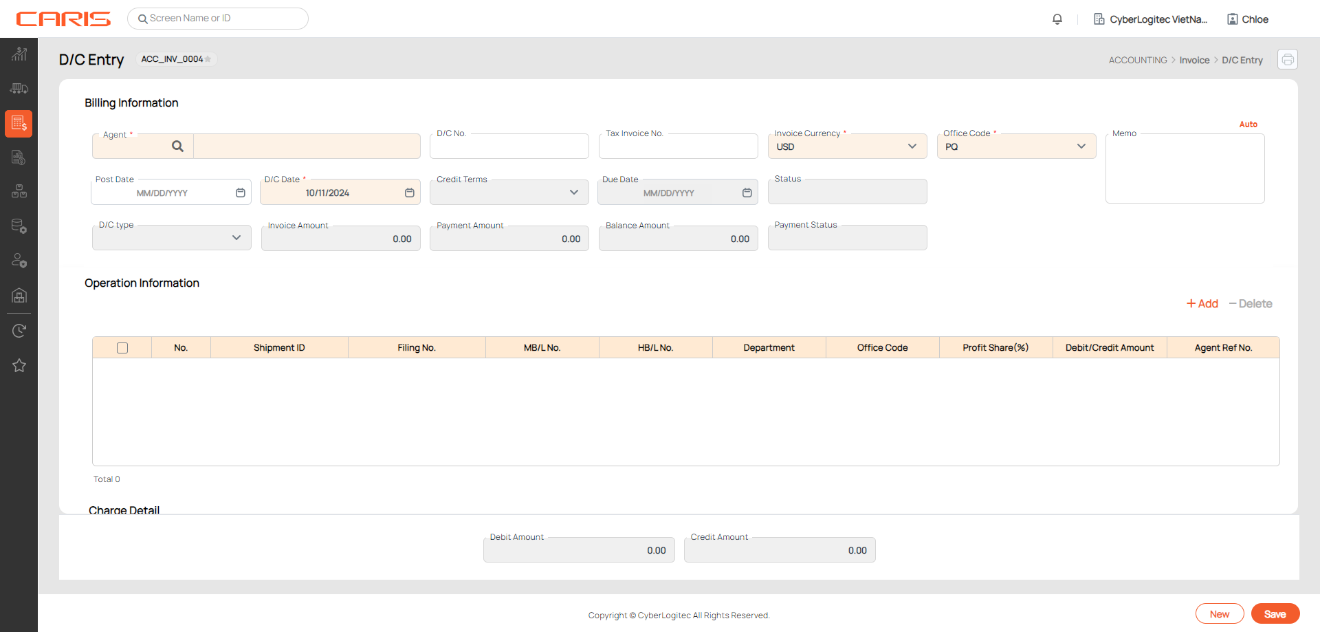 Button +Update Invoice is used for adding charges from Master B/L or Shipment Details for unposted D/C. Any changes will also update in Master B/L or Shipment Details (Freight tab).