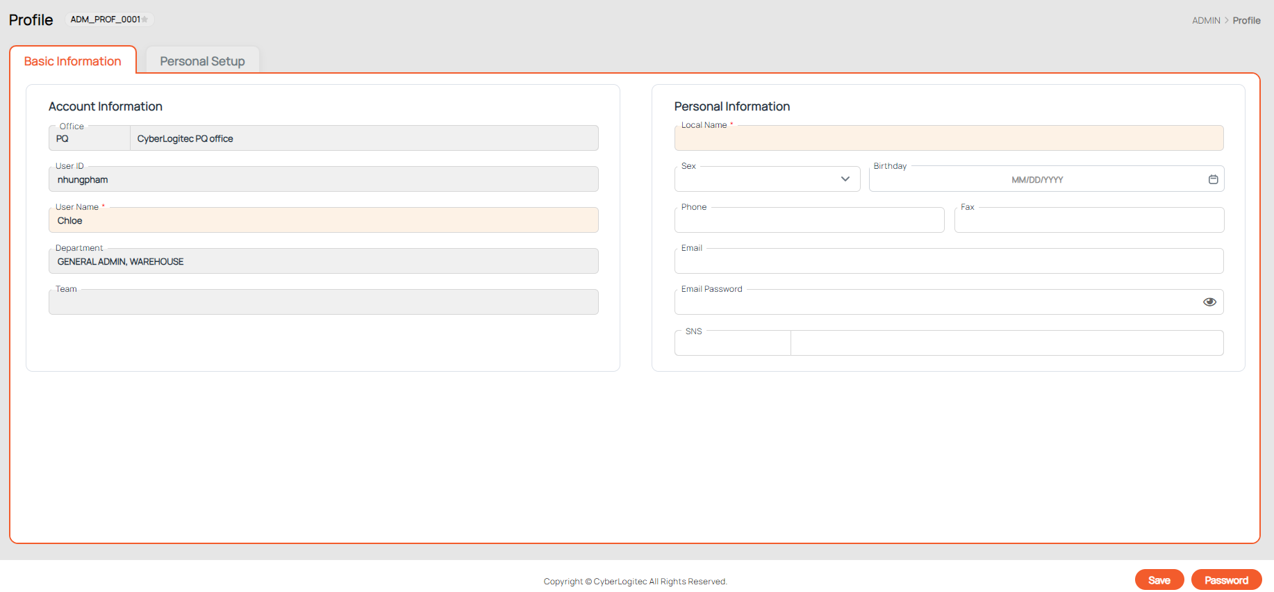 Go to the Admin / Profile / Basic Information tab. Following information can be managed: