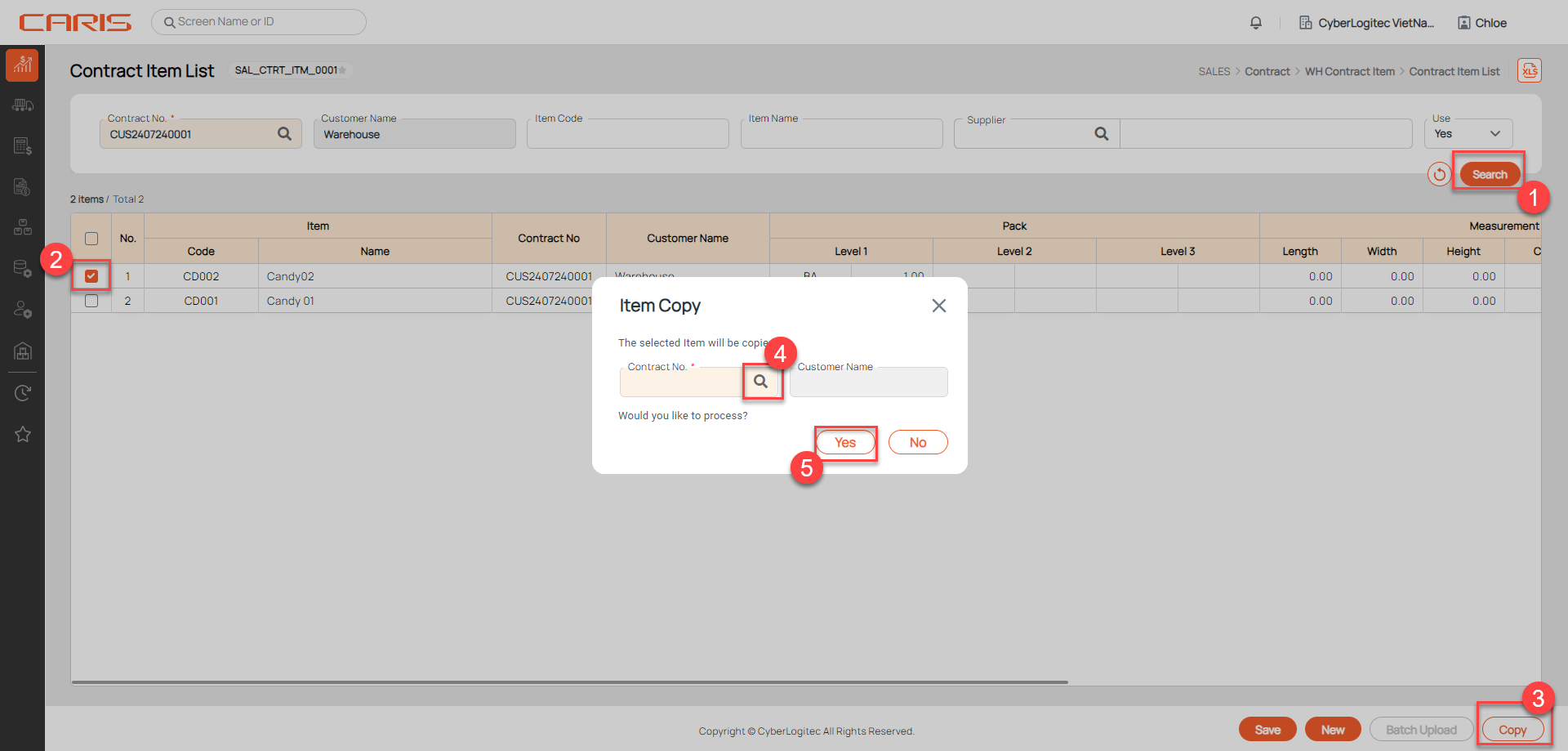 1. Go to Sales > Contract > WH Contract Item > Contract Item List