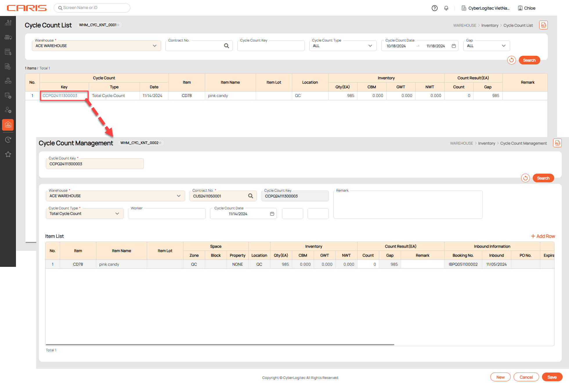 The Cycle Count List screen allows users to retrieve the counting schedules and detailed information about them in the system based on the user’s search criteria.