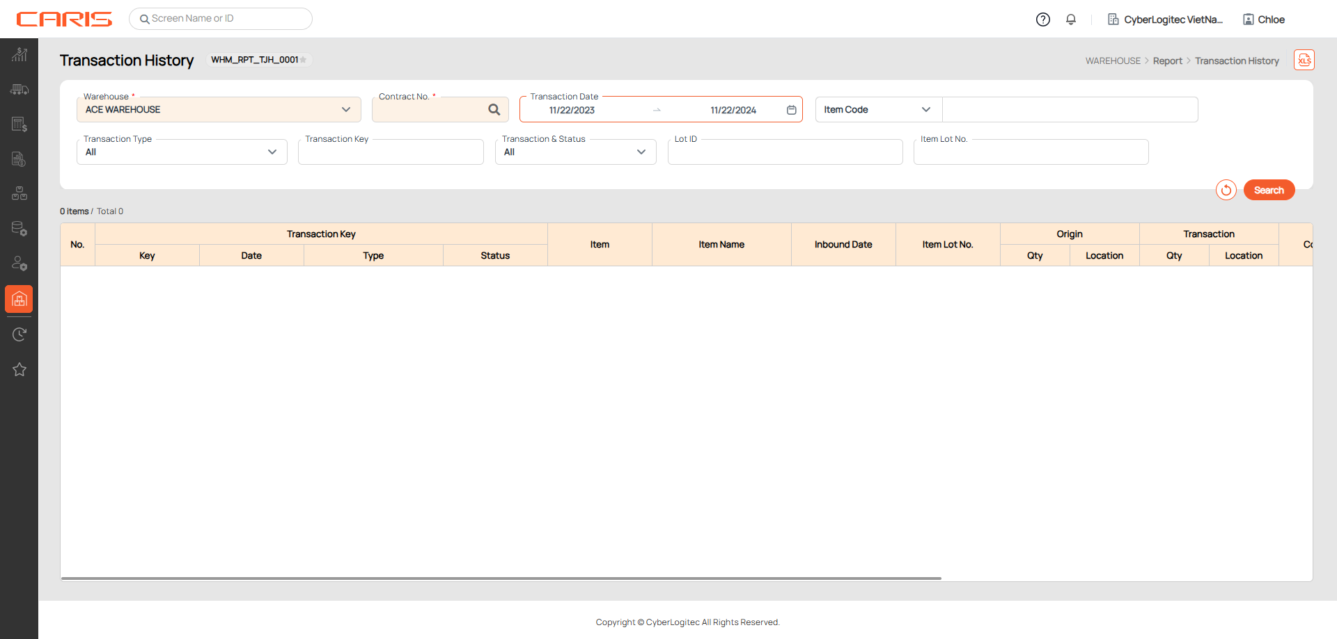 Navigation: Warehouse > Report > Transaction History